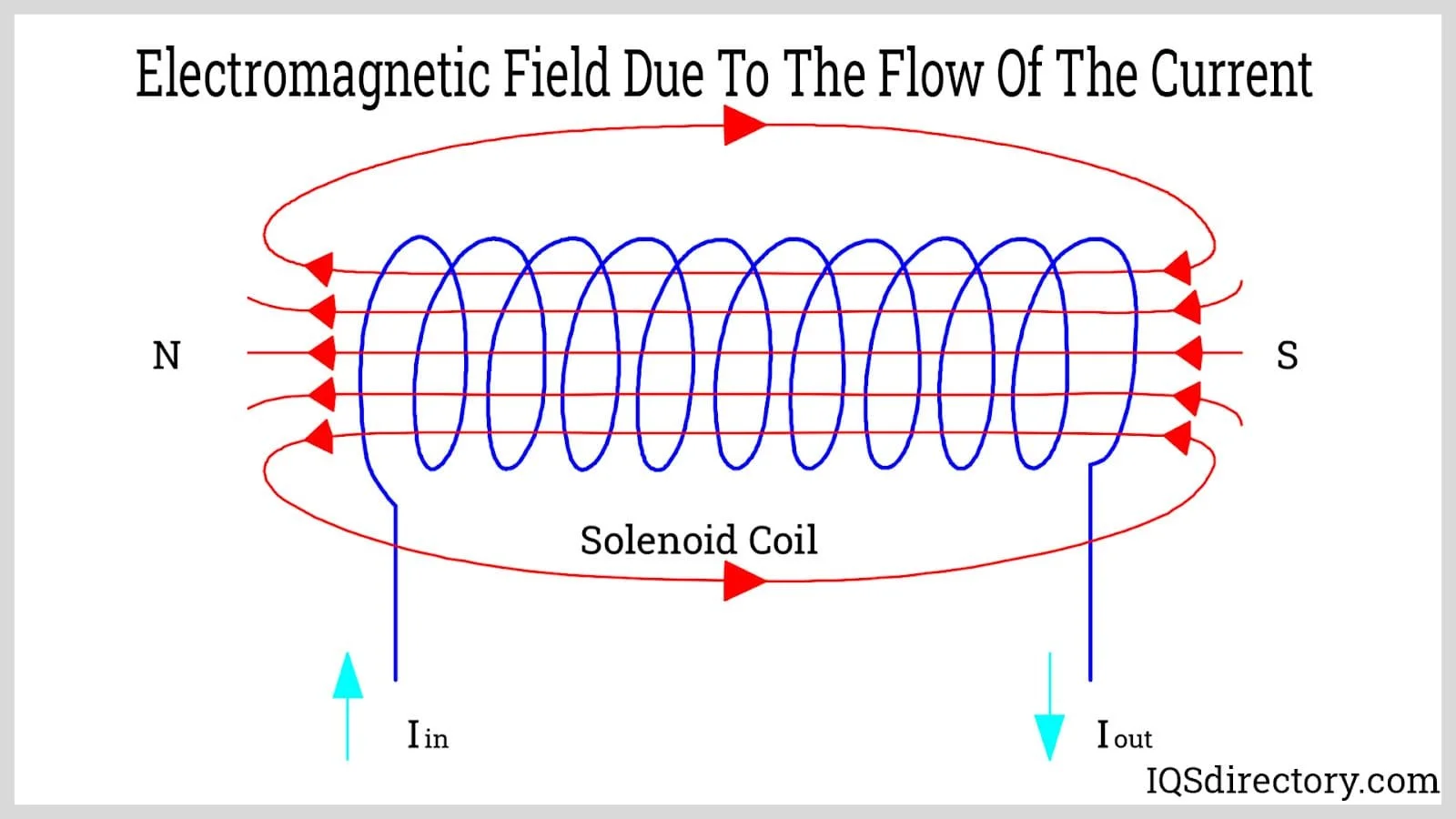 Electromagnetism is simply the combination of electricity and magnetism. We already know that a current-carrying wire creates a magnetic field around it. When a current-carrying wire is wound up into a coil (such as in the solenoid in the picture below), the magnetic field is classified as a static magnetic field. This magnetic field is much more intense and has distinct north and south poles. This means that the coil would create a magnetic field that could attract or repel other magnets.