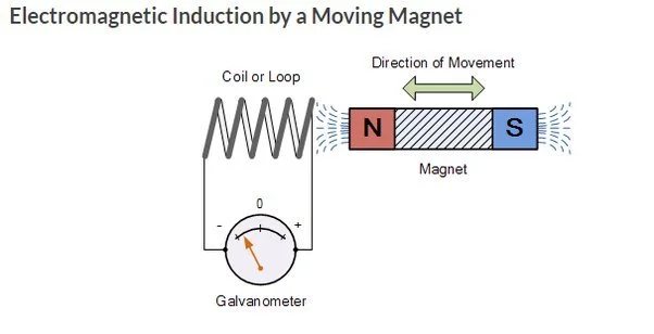 If you were to remove the current from the wire the magnetic field would be lost. However, by moving a magnetic cylinder back and forth through the coil, a current is created. This process is called electromagnetic induction. The current is induced into the coil by the movement of magnetic flux. This current therefore creates a voltage, creating electricity. This is the general process behind generators and transformers.
